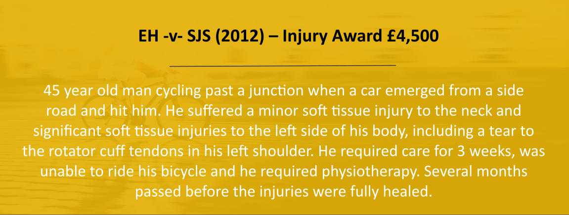 What that meant is that the victim would receive an award for the actual injury, a second amount for other losses which followed on, most commonly cycle, clothing and kit, loss of earnings, and alternative travel.
