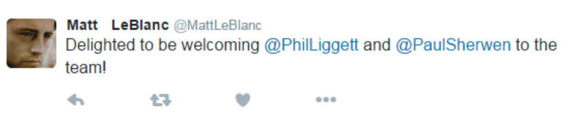 Shortly after Evans made the announcement, fellow host and former Friends star Matt LeBlanc tweeted that Phil Liggett and Paul Sherwen were to join the team of presenters.