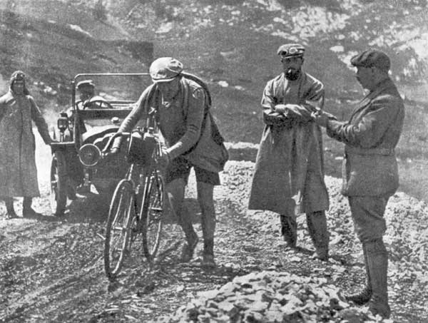 By 1908, circulation of L’Auto had reached a quarter of a million and in 1910 Desgrange and his race officials decided to send riders (who raced independently at that time) into the high mountains.